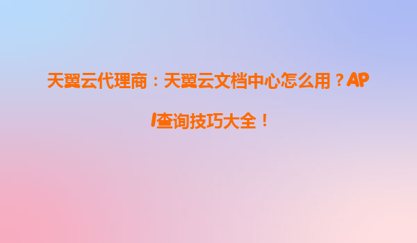 天翼云代理商:天翼云文档中心使用指南与API查询技巧大全