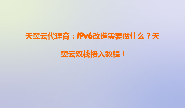 天翼云代理商:IPv6改造与双栈接入全解析