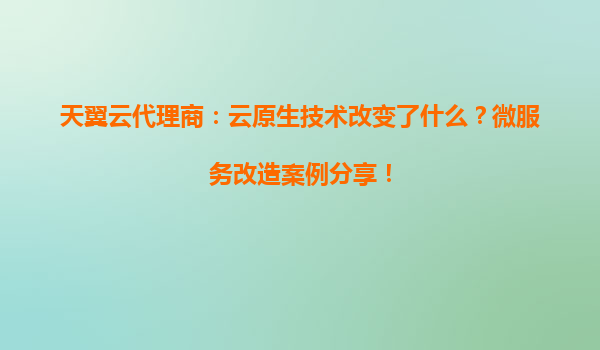 天翼云代理商:云原生技术改变了什么?微服务改造案例分享!