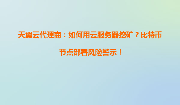 天翼云代理商:如何用云服务器挖矿?比特币节点部署风险警示!