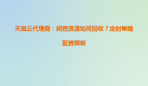天翼云代理商如何高效回收闲置资源?定时策略配置模板解析