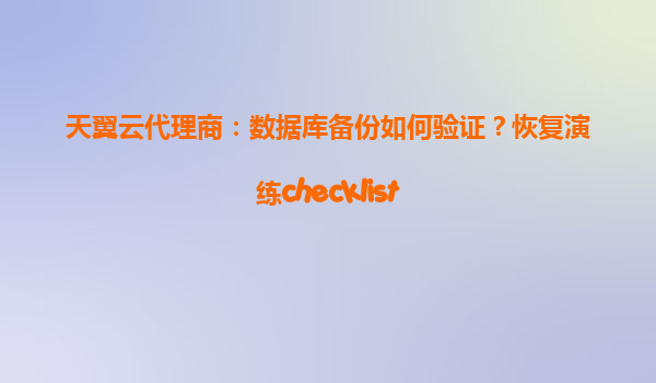 天翼云代理商:数据库备份验证与恢复演练Checklist