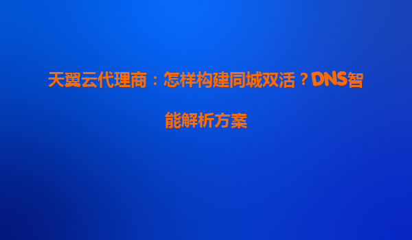构建同城双活与DNS智能解析方案:天翼云及其代理商的协同优势