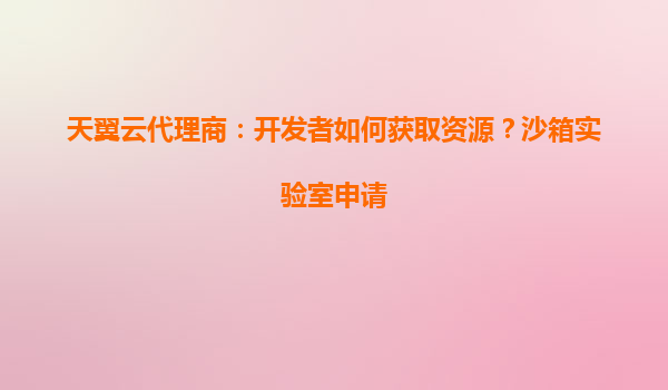 天翼云代理商:开发者如何高效获取资源与沙箱实验室申请指南