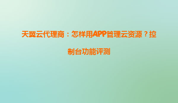 天翼云代理商:如何通过app高效管理云资源?控制台功能深度解析