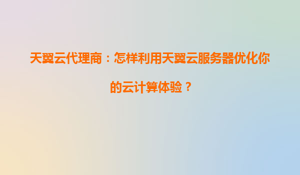 如何通过天翼云与代理商优化您的云计算体验?