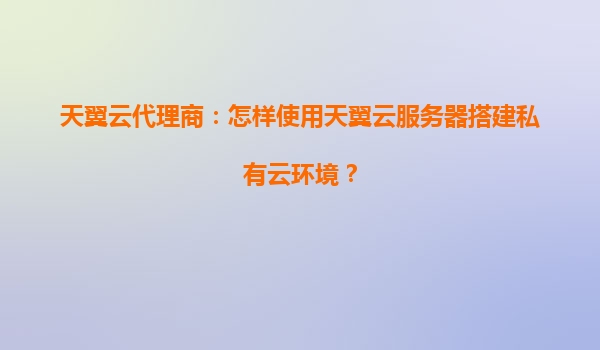 天翼云代理商指南:使用天翼云服务器搭建私有云环境