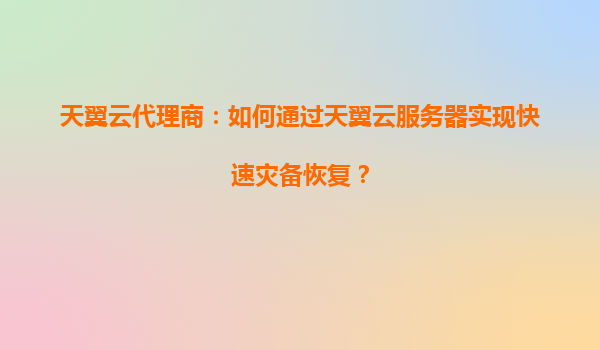 如何通过天翼云服务器实现快速灾备恢复?