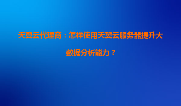 如何利用天翼云服务器与代理商优势提升大数据分析能力