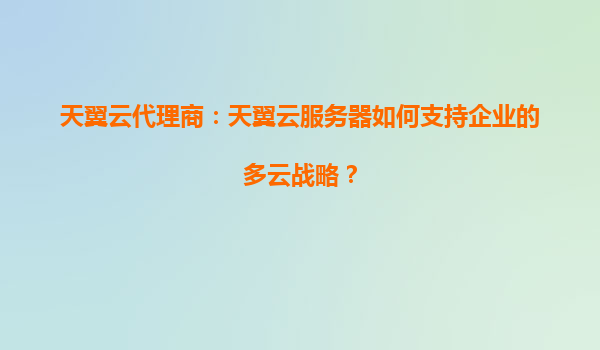 天翼云代理商:天翼云服务器如何支持企业的多云战略?