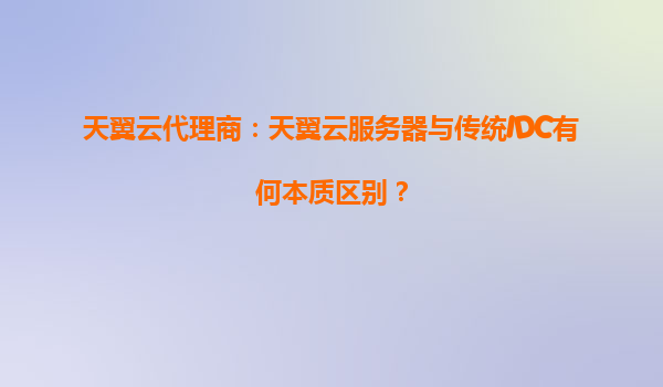 天翼云服务器与传统IDC的本质区别及代理商的优势