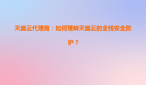 天翼云代理商视角:如何理解天翼云的全栈安全防护?