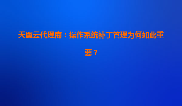 天翼云代理商:操作系统补丁管理为何如此重要?
