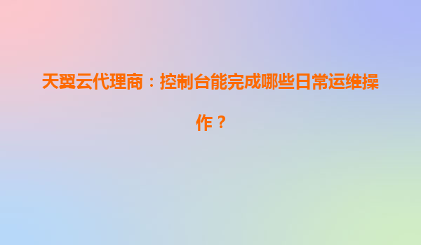 天翼云控制台为代理商提供的日常运维能力解析