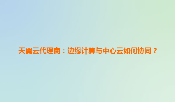 天翼云代理商:边缘计算与中心云如何协同?