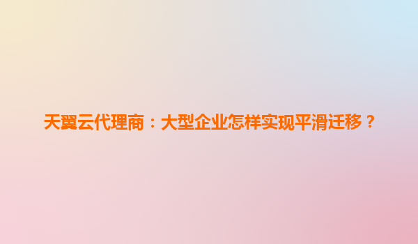 天翼云代理商:大型企业怎样实现平滑迁移?