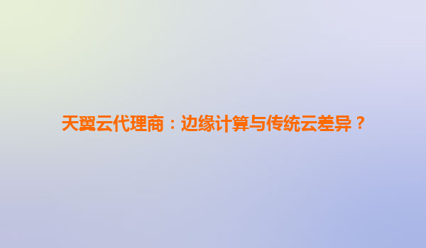 天翼云代理商视角:边缘计算与传统云计算的差异解析
