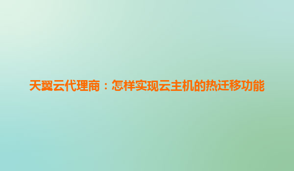 天翼云代理商如何实现云主机热迁移功能