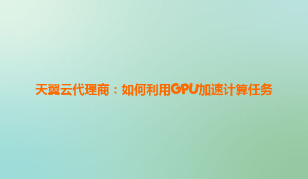 天翼云代理商:如何利用GPU加速计算任务
