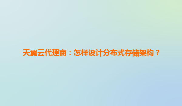 天翼云代理商指南:如何设计高性能分布式存储架构