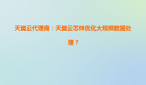 天翼云代理商:优化大规模数据处理的综合解决方案