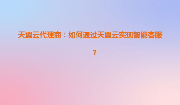 天翼云代理商:如何通过天翼云实现智能客服?