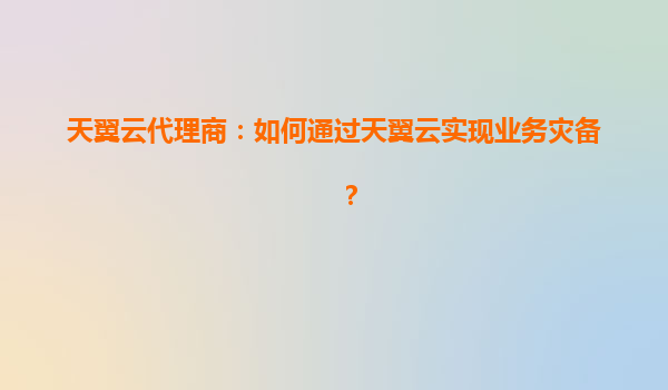 天翼云代理商指南:如何通过天翼云实现高效业务灾备