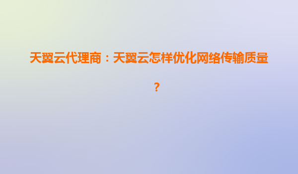 天翼云代理商:天翼云如何优化网络传输质量