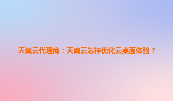 天翼云代理商解析:如何全面优化云桌面体验