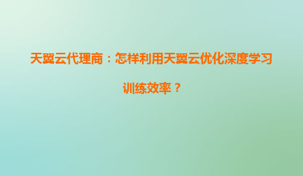 天翼云代理商:怎样利用天翼云优化深度学习训练效率?