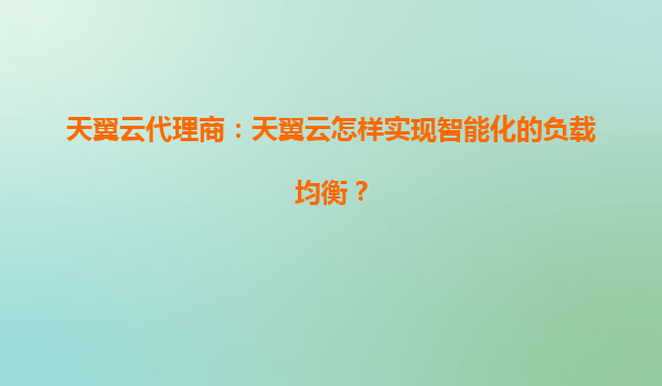 天翼云代理商解读:天翼云如何实现智能化的负载均衡
