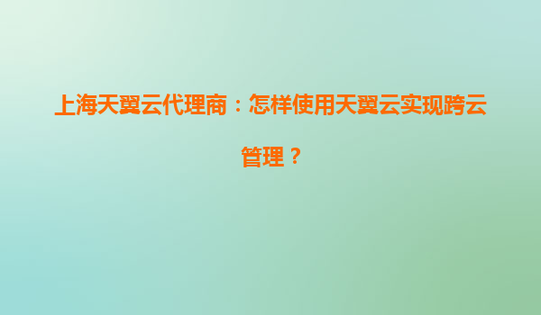 如何通过上海天翼云代理商实现高效跨云管理