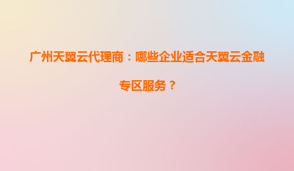广州天翼云代理商:哪些企业适合天翼云金融专区服务?