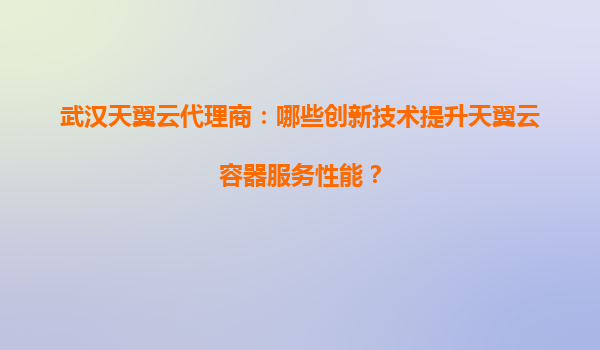 武汉天翼云代理商:哪些创新技术提升天翼云容器服务性能?