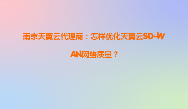 南京天翼云代理商:怎样优化天翼云SD-WAN网络质量?