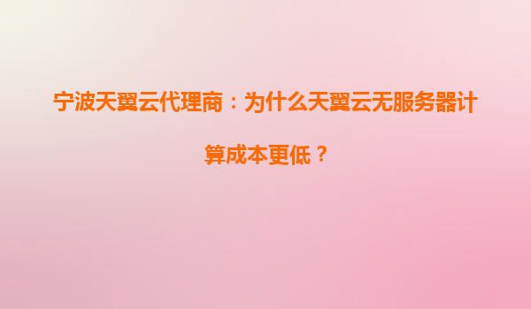 宁波天翼云代理商:为什么天翼云无服务器计算成本更低?
