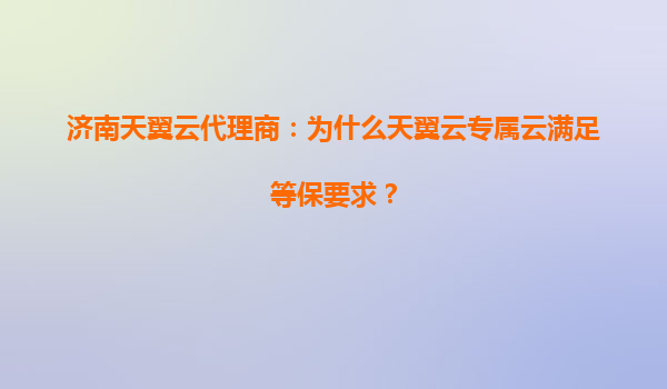 济南天翼云代理商解析:天翼云专属云如何满足等保要求