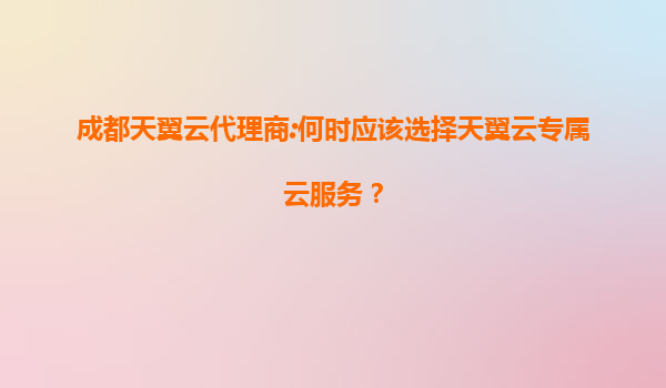 成都天翼云代理商:何时应该选择天翼云专属云服务?