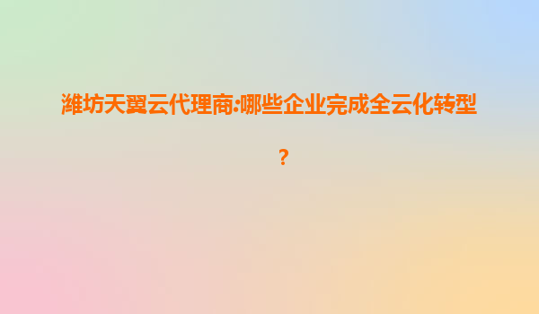 潍坊天翼云代理商:哪些企业已成功实现全云化转型?