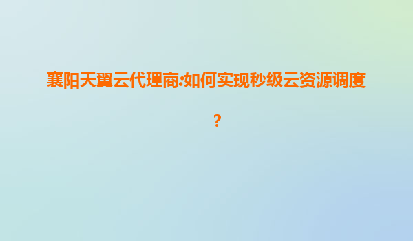 襄阳天翼云代理商:如何实现秒级云资源调度