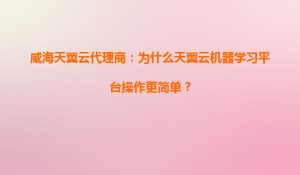 威海天翼云代理商:为什么天翼云机器学习平台操作更简单?