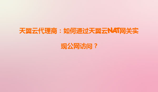 天翼云NAT网关实现公网访问的核心价值